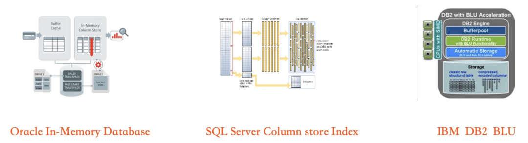Oracle公司在在2013年发表的Oracle 12C上,发布了Database In-Memory套件,其最核心的功能即为In-Memory Column Store,通过提供行列混合存储/高级查询优化(物化表达式,JoinGroup)等技术提升OLAP性能。