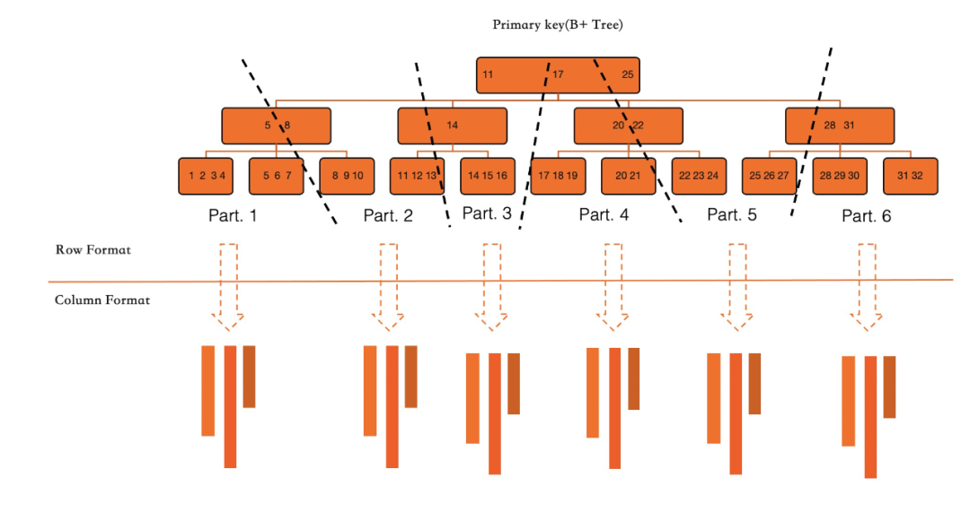 更低的成本,用户可以非常方便的指定哪些列甚至一张表哪个范围的存储为列存格式用于分析。全量数据继续以行存存储。