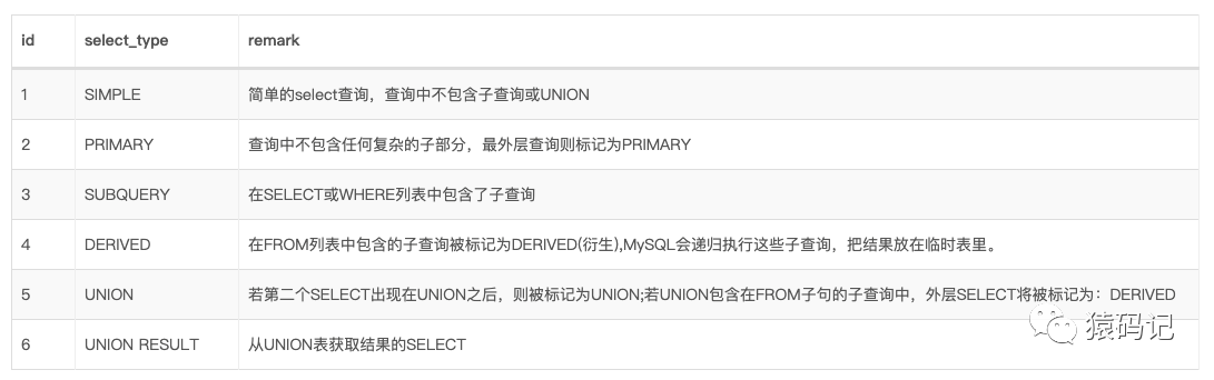 id: SELECT 查询的标识符. 每个 SELECT 都会自动分配一个唯一的标识符