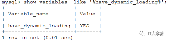 在MySQL上安装插件需要数据库支持动态载入。检查是否支持,用如下检测: