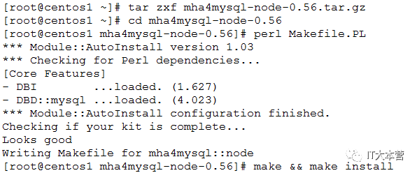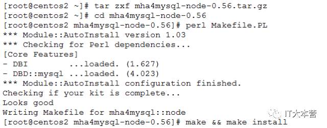 其他两个数据节点也安装mha4mysql-node-0.56.tar.gz(过程略)