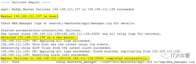 从日志信息中可以看到 master failover 已经成功了,并可以看出故障转移的大体流程
