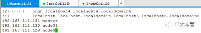 2、分别修改/etc/hosts文件: