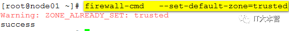 1、三台均设置防火墙的默认区域为trusted。