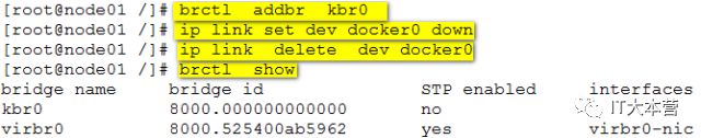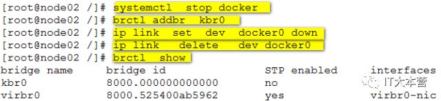 删除网桥docker0,新建网桥kbr0: