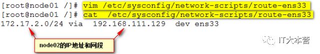 新建路由文件:route-eth0,eth0为node1上的网卡名。