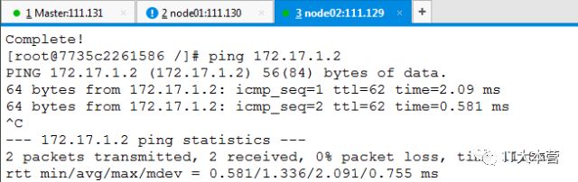 4)验证两个宿主机间容器的互通性: