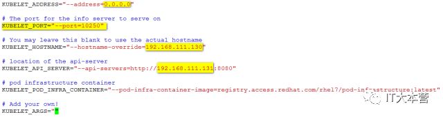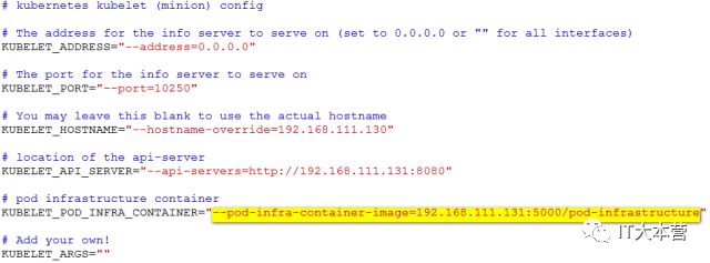 配置项KUBELET_POD_INFRA_CONTAINER="--pod-infra-container-image=registry.access.redhat.com/rhel7/pod-infrastructure:latest"作用k8s创建pod的时候需要起一个基本容器,所以node节点要能连网。也可以自己搭建一个私有仓库,将pod-infrastructure:latest镜像上传到私有仓库中,修改此配置文件的地址就可以。