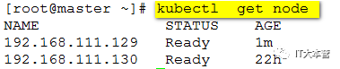5、在master上检查node 状态: