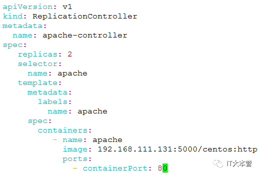 2、创建apache-rc.yaml文件,根据文件内容创建rc和pod。