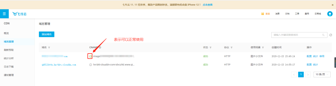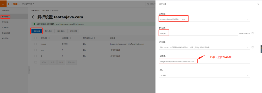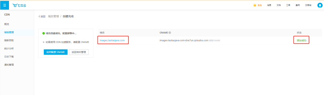 5、创建成功时,会生成一个CNAME,这个值在弄二级域名中使用到