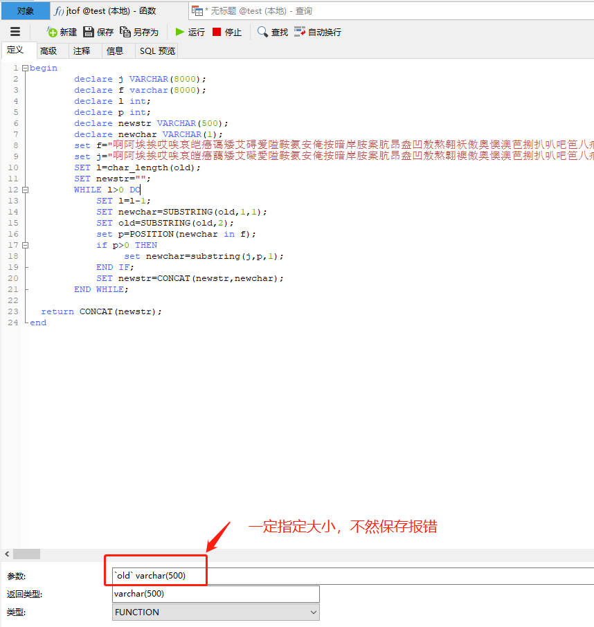 declare newstr VARCHAR(500);