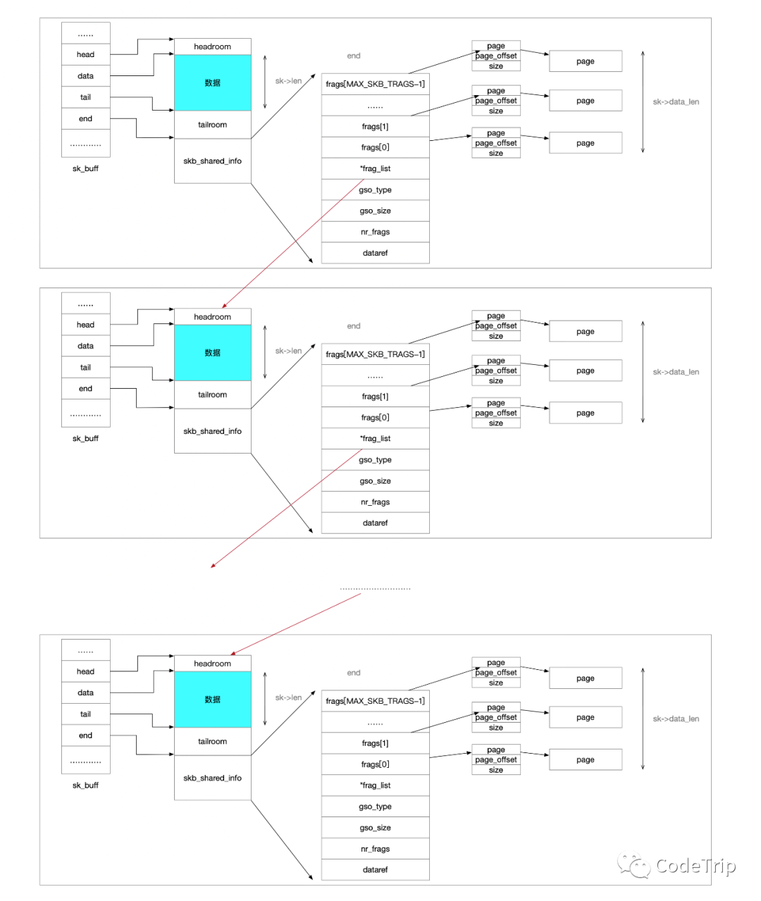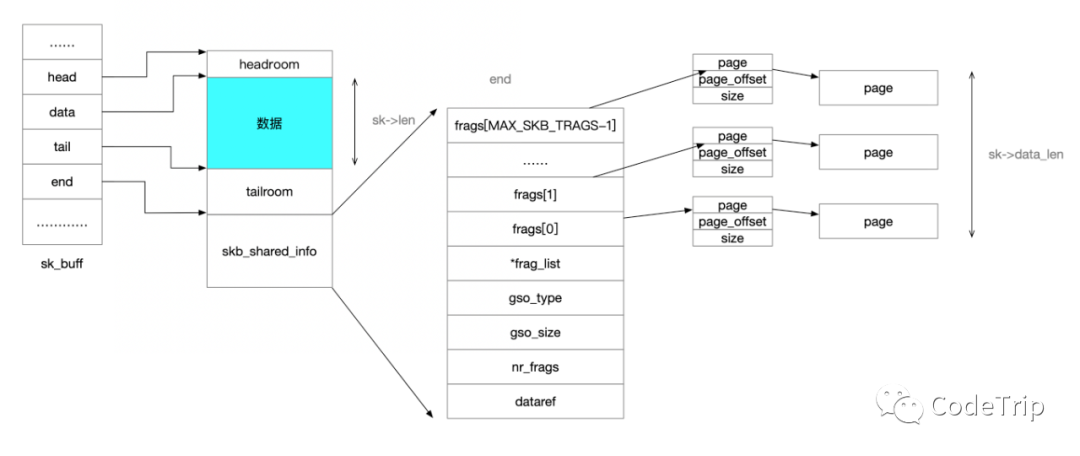 当单个sk_buff的数据由多个片段组成时,将使用skb_shared_info结构。