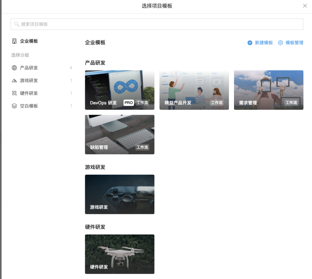 这款产品的上手非常快,因为它提供了一些常用模版。我这边就直接给予DevOps研发模版来创建。