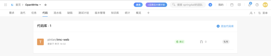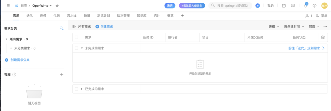 完成创建后,不难发现菜单中的需求、迭代、任务、缺陷、测试计划、版本管理不就是JIRA的替代品么?而知识库不就是Confluence的替代品嘛!