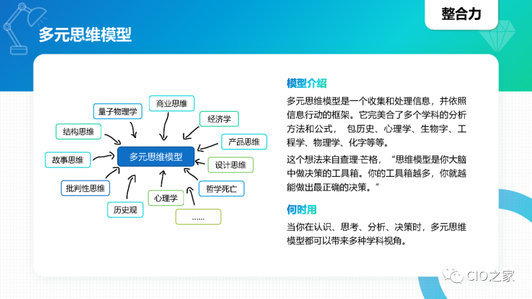 每个人拥有的思维模型不一样,但是一定需要多元化,各位看官还是要找到自己理解的,融会贯通到实践中。思维模型最终的目的是可以为我所用。都说“道理我都懂,但还是过得不好。”这就是因为太过抽象的道理并不能让我们有的放矢。一个更通俗点的比喻就是:思维模型就是安装在我们头脑中的APP。手机APP是我们能够直接拿来就用的工具箱,而思维模型一旦扎根在我们的头脑,也就成为了可以直接拿来使用的工具。因此,你头脑中拥有的工具箱(即思维模型)越多,安装的有效APP越多,你就越能做出快速正确的决策和选择。