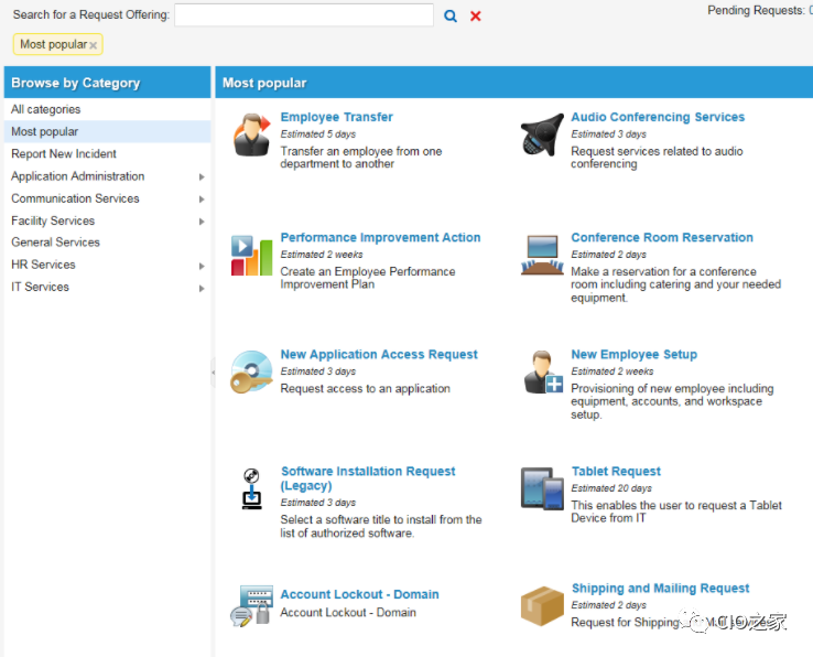 在您为最终用户的期望做好规划之后,您应该关注的下一层细节是更轻松地浏览服务目录。我建议您首先对服务进行分类并应用关键字,以便轻松导航或搜索适当的服务。服务类别允许您的用户在最短的时间内找到他们需要的服务。
