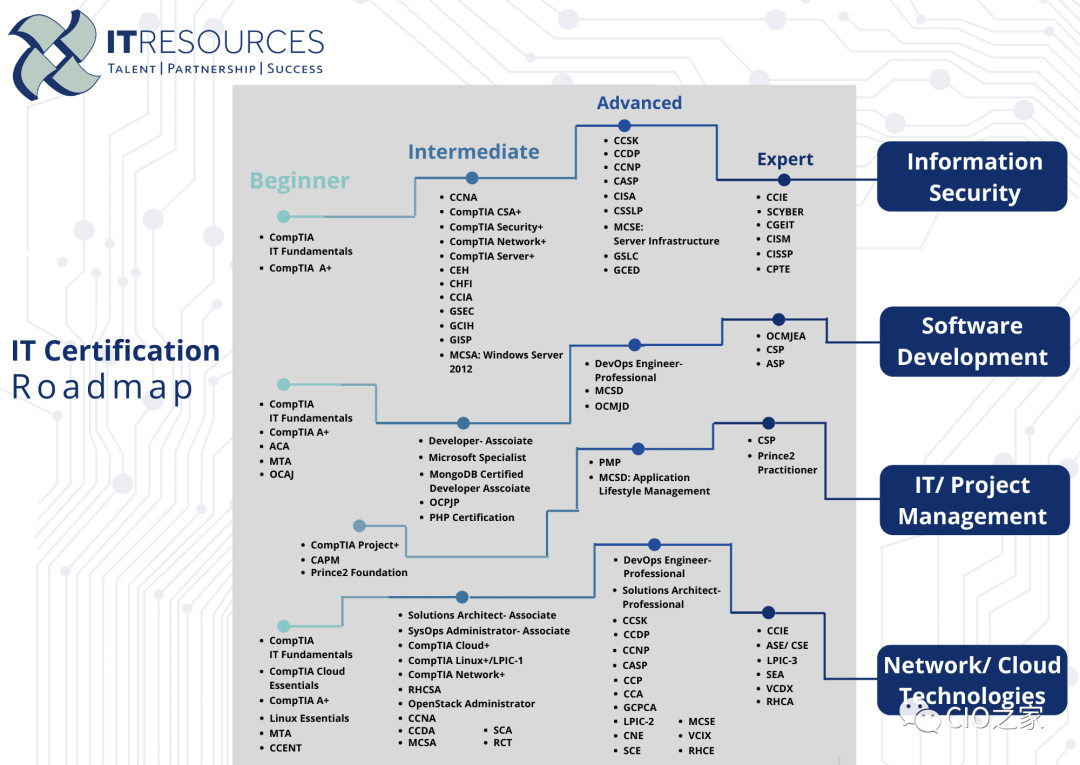 如果你想在IT世界是从现在的位置往上打怪升级,不管从技术面还是从职业规划方面来讲,考取IT的相关认证都是一条值得你去尝试的路子。有些厂商会通过细致的培训计划进行验证,认证证明了您在特定技术、方法和功能方面的能力或专业知识。有IT认证的背书往往会让你的敲门砖变得更厚实。考取证书只是一部分,真正的作用还是在于通过考试的过程,学习和巩固自己的IT知识技能。当然,薪水会因多种因素而异,包括:你的工作地点 你的工作技能和职场经验 您工作的公司或组织。