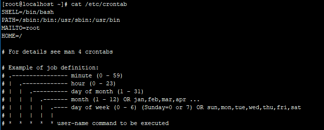 第三行 MAILTO变量指定了crond的任务执行信息将通过电子邮件发送给root用户,如果MAILTO变量的值为空,则表示不发送任务 执行信息给用户;