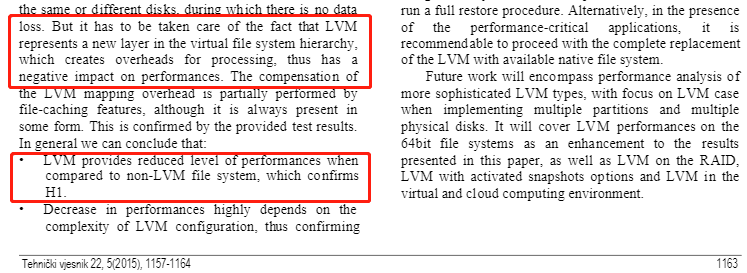 (2)是否使用LVM等类似技术在存储之上外加逻辑处理层导致的额外开销