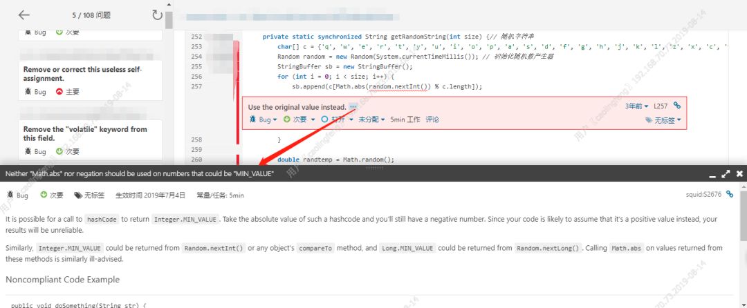 意思是说代码取绝对值操作可能会超过int类型的最小值。