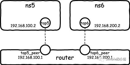 $ ip link add tap1 type veth peer name tap1_peer $ ip link add tap2 type veth peer name tap2_peer $ ip netns add ns1 $ ip netns add ns2 $ ip link set tap1 netns ns1 $ ip link set tap2 netns ns2