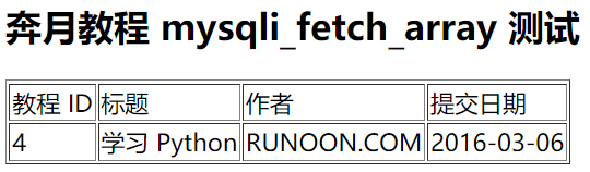 echo '<h2>奔月教程 mysqli_fetch_array 测试<h2>';