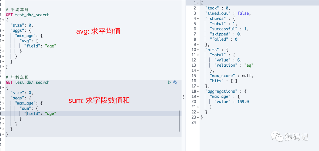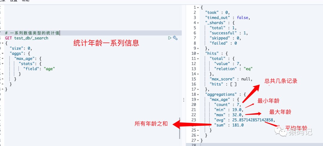 返回一系列数值类型的统计值,包含min,max,avg,sum和count