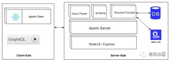 下图显示了客户端-服务器架构。Web 服务器建立在 NodeJs 和 Express 框架之上。ReactJS 应用程序(使用 Apollo 客户端库构建)或 GraphiQL 浏览器应用程序向 Apollo GraphQL 服务器发出请求。查询将根据服务器中定义的模式进行解析和验证。如果请求模式通过验证,则将执行关联的解析器函数。解析器将包含从 API 或数据库获取数据的代码。