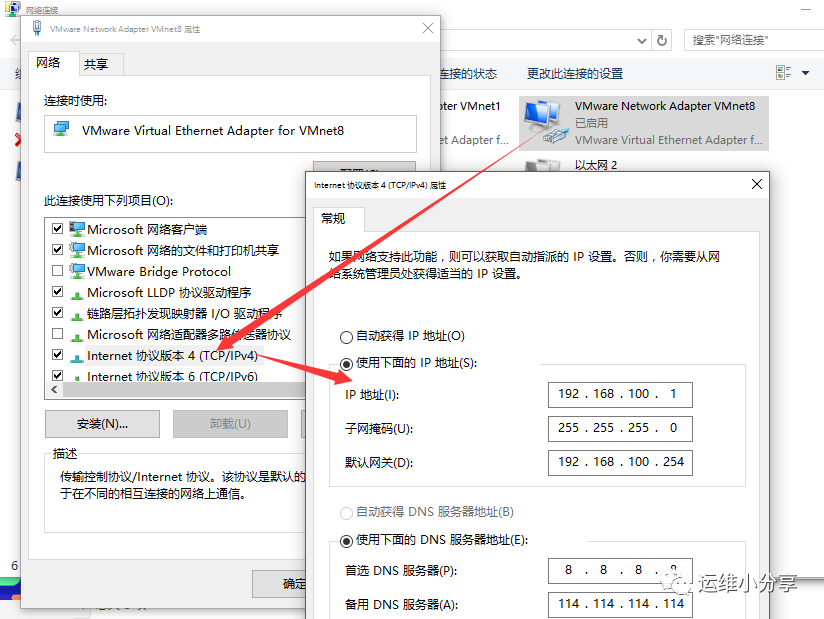 总结:linux编辑网络 -> 设置NAT子网IP -> 设置NAT网关 -> cmd查看VMnat8的IP