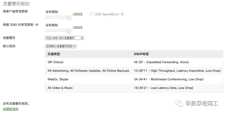 默认没有配置防火墙和访问控制策略。默认配置了一个简单的QoS策略。需要根据实际需求添加Layer 7防火墙规则、NAT映射、QoS等策略。