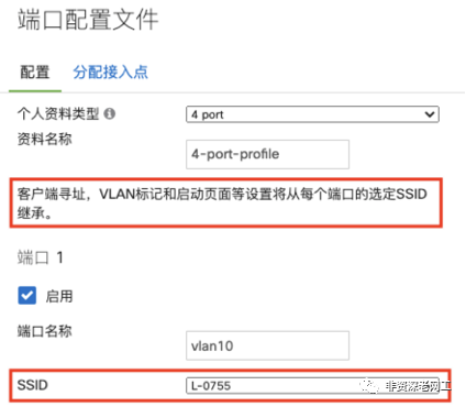 请仔细阅读这句话“客户端寻址,VLAN标记和启动页面等设置将从每个端口的选定SSID继承”——虽然为端口分配的SSID,但这并不是让以太网端口去广播SSID。实际上它们也不可能广播SSID —— 而是让以太网端口去继承SSID的VLAN ID和Portal认证页面等设置。