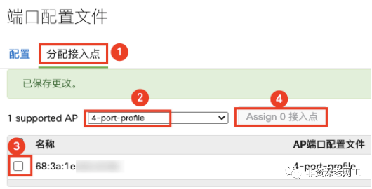 如果使用了具备多个以太网接口的AP型号,例如MR-30H,它有4个downlink以太网口。并且,希望为不同的以太网接口配置不同的VLAN ID,那么就需要创建端口配置文件,然后将配置文件分配给特定的AP。