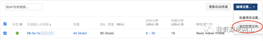 建议通过RF配置文件的方式批量修改AP的射频参数。