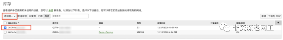 注意⚠️:可能需要等待一段时间,不超过一天,SN才能被同步到中国区的Meraki Cloud,然后才能成功被添加。