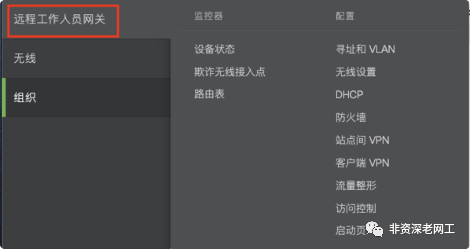 添加设备到网络之后,就可以在Dashboard左边的导航栏看到“远程工作人员网关”菜单。