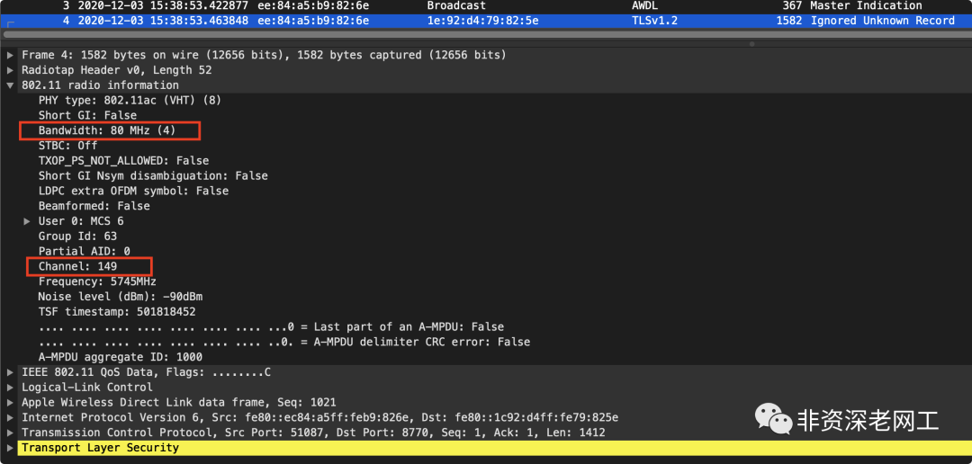 而在 Channel Sequence TLV 里面,Channel List 都是 20MHz 的 ch149 和 ch161。