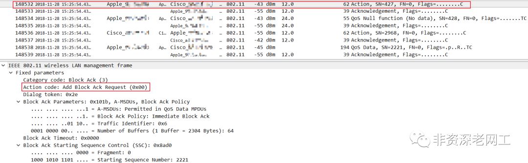 但其他 STA,包括 AP 在内,也都将 ACK Policy 设置成了 Normal ACK 啊!还是那句话,同样的条件下,为什么其他 STA 都能正常 BA,只有这 1 台 MacBook 不能正常 BA 呢?