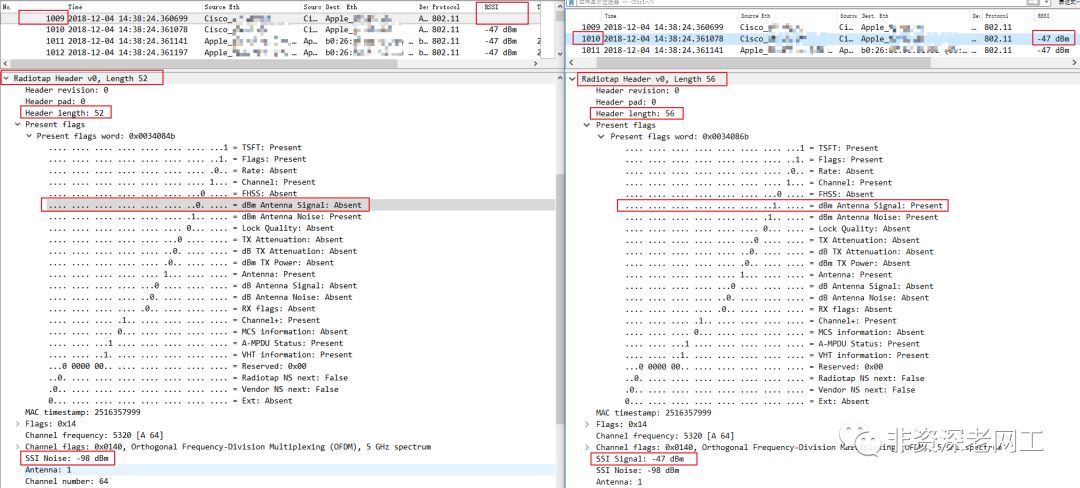 当然,严格地讲,这两个特征也算不上异常,是因是果很难说的清楚。但有时候 Data frame 虽然把 A-MPDU flags 设置为 0x0000,却没有携带 RSSI。这就不正常了。