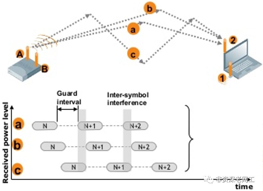 现在的无线技术基本上都采用空间复用,因为可以利用环境自然地实现分集传输的效果。大家都应该听到过“回声”吧?在山谷里面大喊一声,过一会儿你会听到很多次重复的声音。在房间里也一样有电磁波的回声,因为反射是所有波的物理特性。只不过时间太短,人的耳朵感知不到,但是天线却可以。