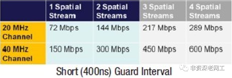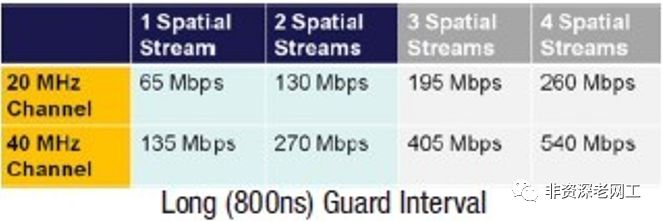 在生产车间、仓库或者室外环境会自动降低到800ns。所以你会发现网卡显示的速率好像不对啊,少了!是AP有问题吗?其实不是的,只不过是因为周围的电磁环境不太理想,STA将GI调整到了800ns,导致PHY速率也相应的下降。