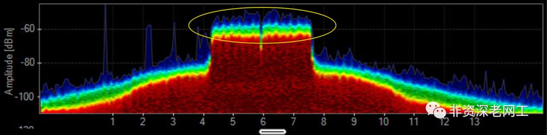 首先我们先看看什么是子载波。下面是利用Wi-Spy捕获的信号能量图。信道6占用20MHz的频宽,但仔细观察振幅的最高点,你会发现并不是平的,有很多小的突起。