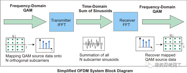 而电信号和波信号的转换就涉及到傅立叶变换了。这个概念很复杂,我也讲不明白,就不在这里献丑了,请大家阅读《傅里叶分析之掐死教程(完整版)》,网址是 https://zhuanlan.zhihu.com/p/19763358,也可以点击左下角“阅读原文”。贴这个图上来的目的是引出另外一个概念,QAM(Quadrature