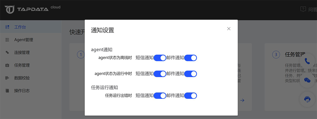 近日,Tapdata Cloud 发布1.0.7 版本,新增数据源支持,支持通知配置,并对界面进行了多处细节优化。