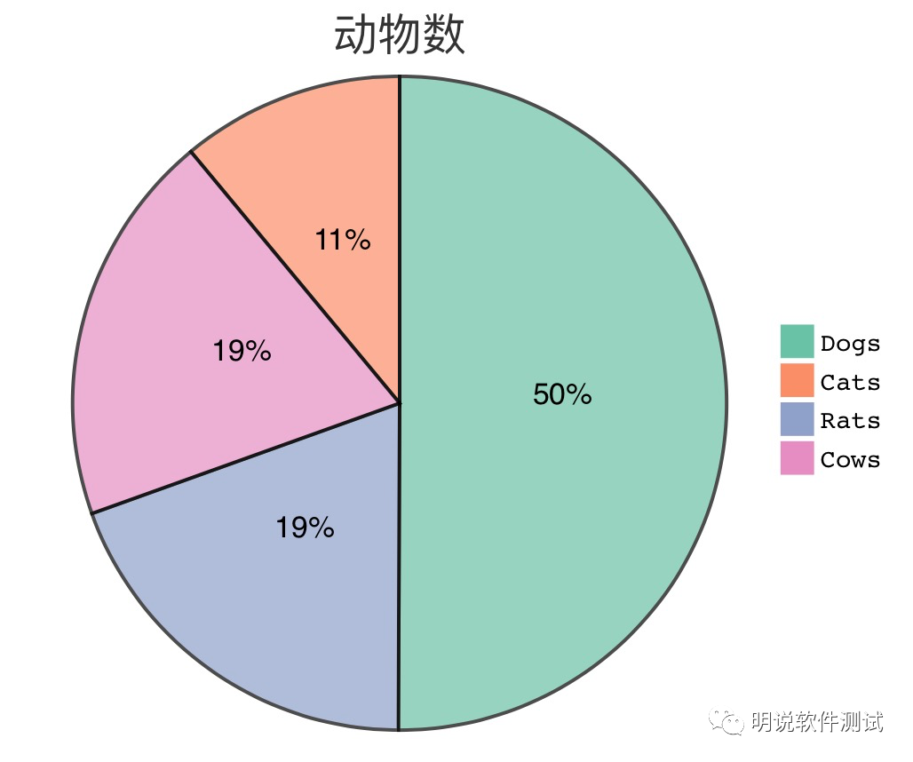```mermaidpietitle 动物数"Dogs" : 386"Cats" : 85"Rats" : 150"Cows" : 150```