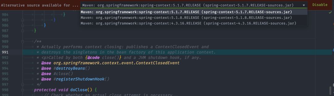 某个多模块项目中使用多个版本的 Spring,如 Spring 4,Spring 5,在使用 IDEA Debug 过程中发现,Spring 部分 jar 如 spring-core 中的上面断点,IDEA 可以成功进入。但是有部分如 spring-context IDEA 始终无法进入断点。