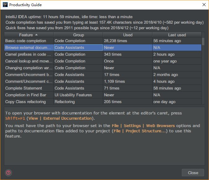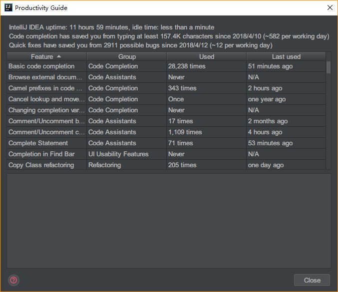 上面我们提到 IDEA 中存在很多功能以及快捷键,但你知道你经常使用是那几个功能以及使用频率如何?
