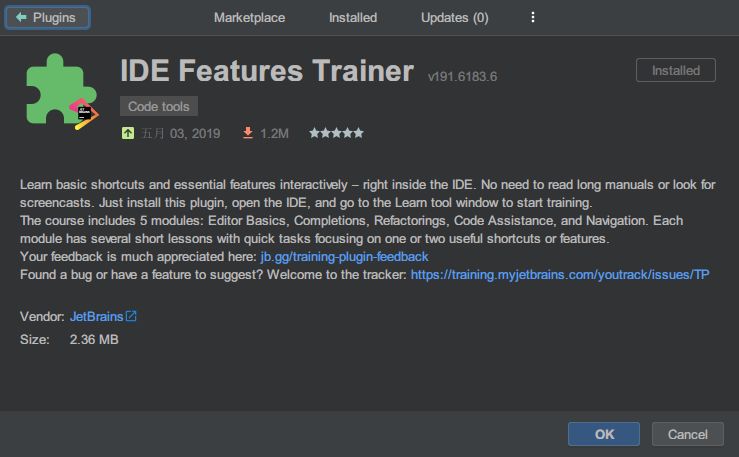 在 setting|plugins 输入 IDE Features Trainer,就能找到这款插件。
