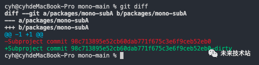 对于子仓库的修改,当你 commit 和 push 之后,在主仓库也会有一个待提交的 commit,需要再在主仓库中再提交一遍更新才行,这里有点多此一举的味道,但是我认为这可以更好的控制多个子项目的版本的一致性。假设我们每周会更新一次主仓库来进行发布生产环境这样的操作,那么这一步就能确保主仓库可以准确的控制某一个子仓库的代码更新,而不会因为不可控引起一颗老鼠屎坏一锅粥的情形。