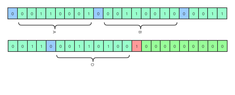 读取压缩后的二进制数据,如果遇到标志为 0 则作为普通字符解析,如果为 1,则连续解析 2 位,分别为滑动窗口偏移位置和对应的数据长度。